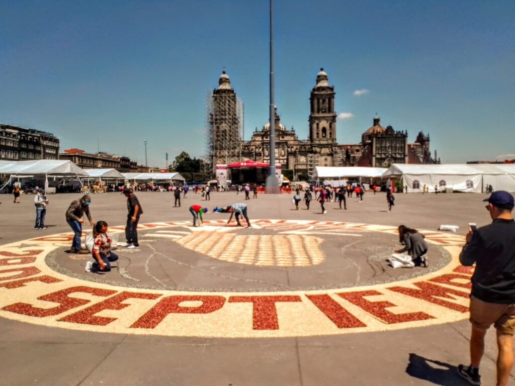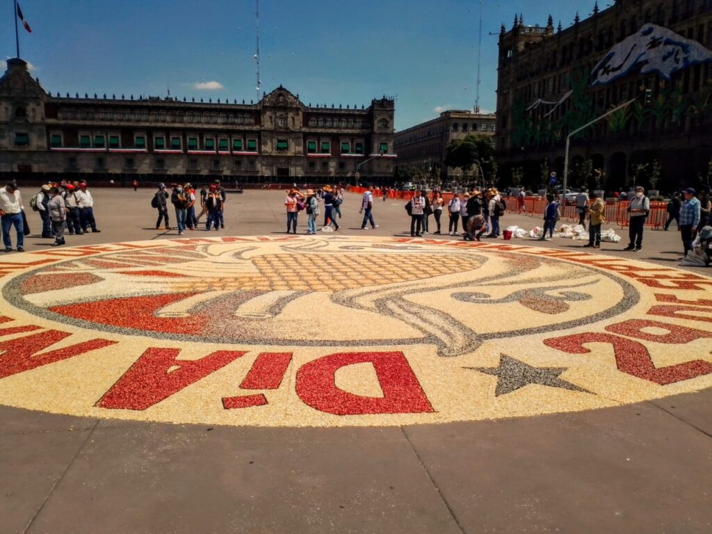 - Artistas y artesanos tlaxcaltecas tuvieron una destacada participación con danzas y la elaboración de una alfombra monumental de maíces en la plancha del zócalo capitalino
