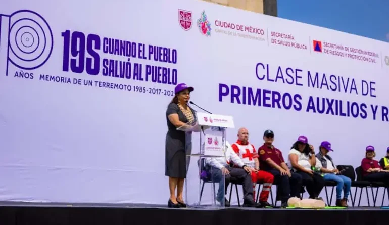 Al encabezar la gran clase masiva de primeros auxilios y reanimación cardiopulmonar en la explanada del Monumento a la Revolución, previo al Mega simulacro Sísmico Nacional 2025 que se llevará a cabo este 19 de septiembre, como parte de la jornada conmemorativa por el 40 aniversario del sismo del 85, Brugada también adelantó que propondrá que se impulse desde temprana edad, la materia de gestión integral de riesgos y protección civil,