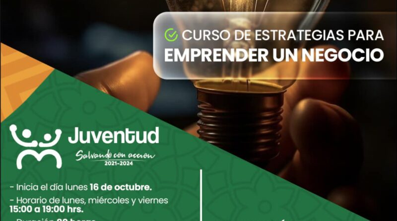 El Gobierno Municipal de Huamantla que encabeza Salvador Santos Cedillo, a través de la Coordinación de Juventud, invita a la población de 15 años en adelante al curso denominado “Estrategias para Emprender un Negocio”, el cual será impartido por especialistas del Instituto de Capacitación para el Trabajo del Estado de Tlaxcala (Icatlax).