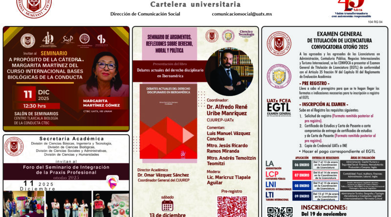 Cartelera de la Universidad Autónoma de Tlaxcala, jueves 11 de diciembre de 2025
