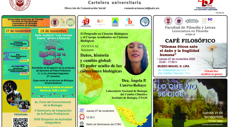 Cartelera de la Universidad Autónoma de Tlaxcala, jueves 27 de noviembre de 2025
