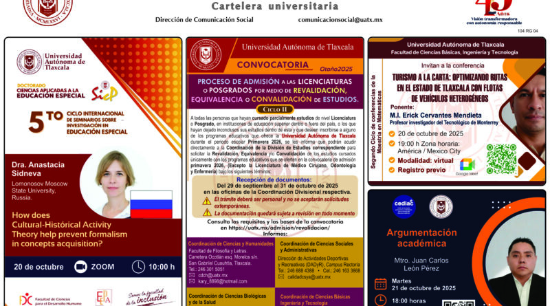 UAT Cartelera de la Universidad Autónoma de Tlaxcala, lunes 20 de octubre de 2025 20 octubre 2025 abcadmin Leer más