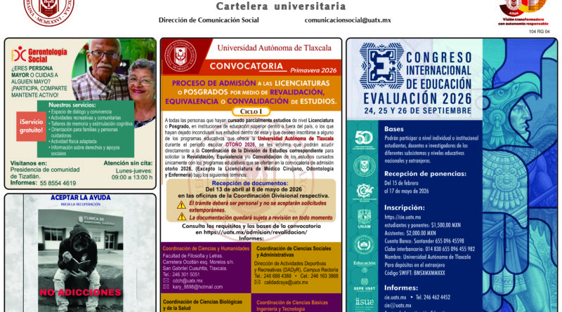 UAT Cartelera de la Universidad Autónoma de Tlaxcala, lunes 6 de abril de 2026 6 abril 2026 abcadmin Leer más