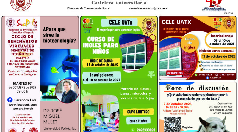 Cartelera de la Universidad Autónoma de Tlaxcala, martes 7 de octubre.