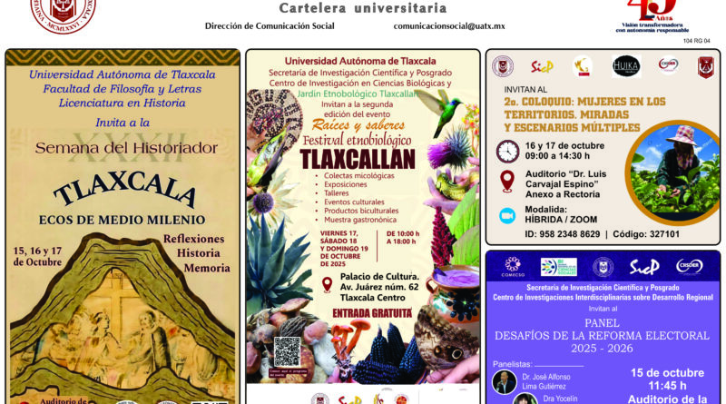 UAT CARTELERA DE LA UNIVERSIDAD AUTÓNOMA DE TLAXCALA, MIÉRCOLES 15 DE OCTUBRE DE 2025 15 octubre 2025 abcadmin Leer más