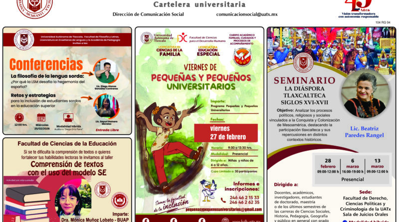 Cartelera de la Universidad Autónoma de Tlaxcala, miércoles 25 de febrero de 2026