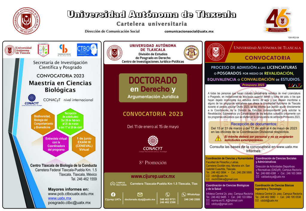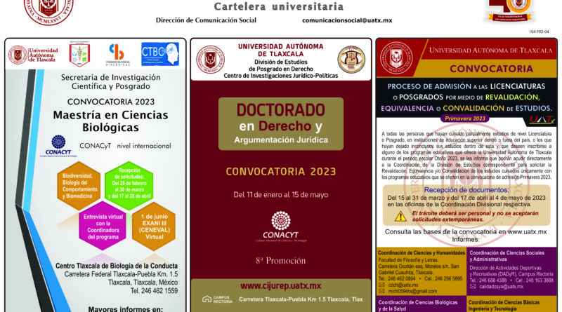 UAT Cartelera de la Universidad Autónoma de Tlaxcala para publicarse el lunes 10 de abril de 2023. 10 abril 2023 abcadmin Leer más