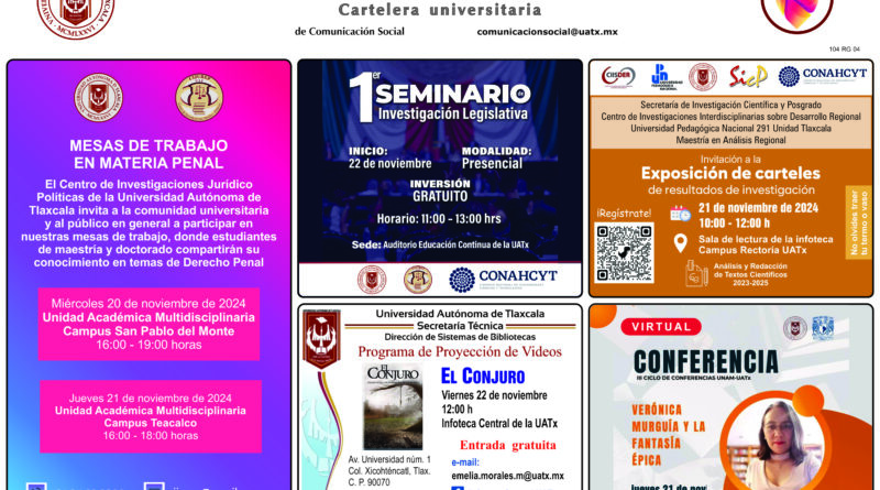Cartelera Universitaria, jueves 21 de noviembre