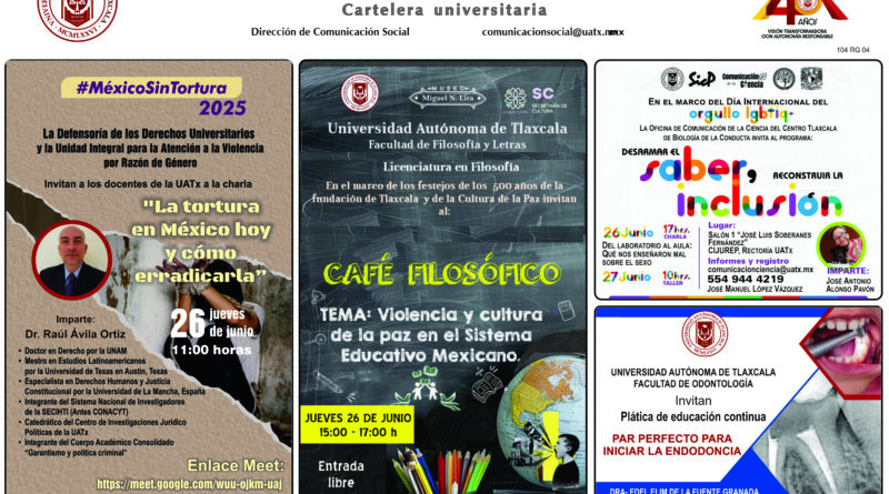 Cartelera Universitaria, jueves 26 de junio