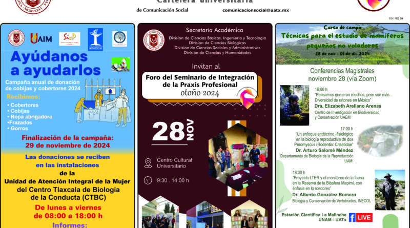 Cartelera Universitaria, jueves 28 de noviembre
