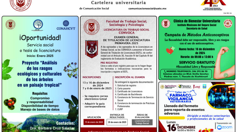Cartelera Universitaria, lunes 16 de diciembre