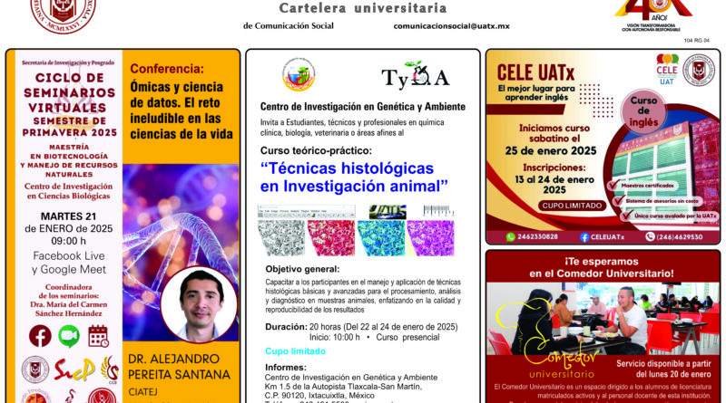 Cartelera Universitaria, lunes 20 de enero