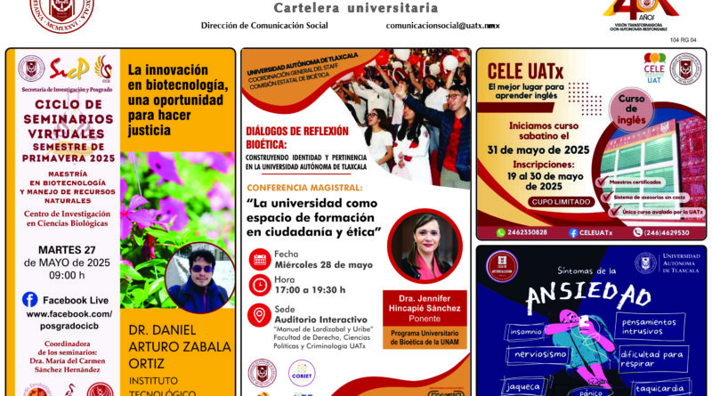 CARTELERA DE LA UNIVERSIDAD AUTÓNOMA DE TLAXCALA, LUNES 13 DE OCTUBRE DE 2025