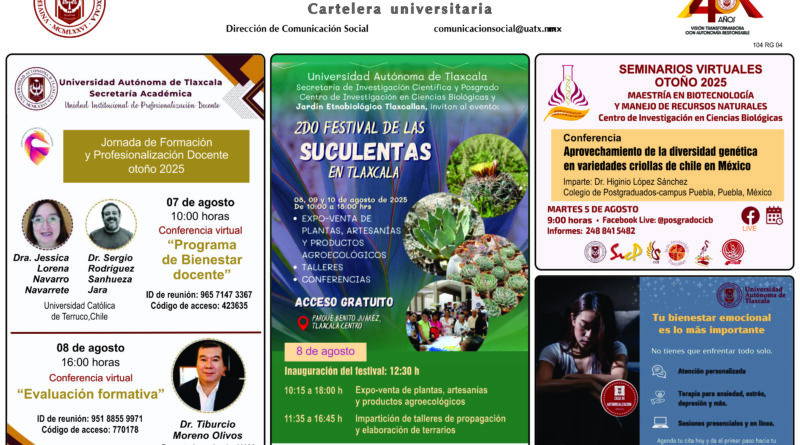 Cartelera Universitaria, martes 5 de agosto