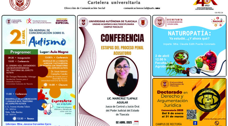 Cartelera Universitaria, miércoles 2 de abril