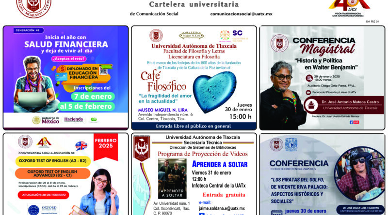Cartelera Universitaria, miércoles 29 de enero