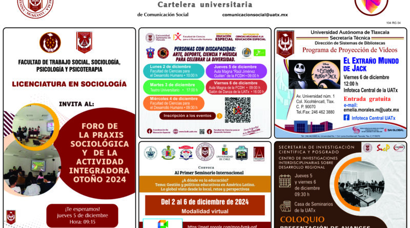 Cartelera Universitaria, miércoles 4 de diciembre