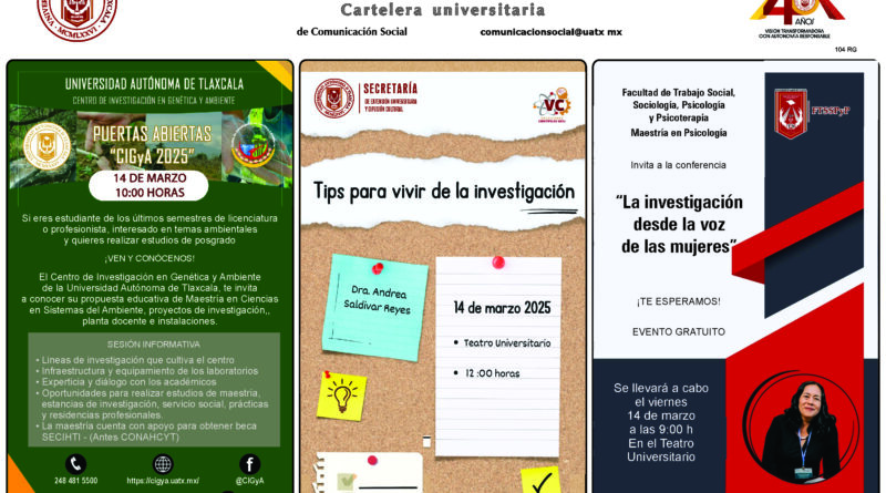 Cartelera Universitaria, viernes 14 de marzo