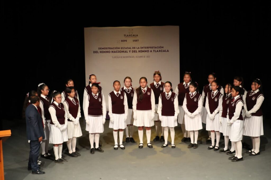 Con la participación de diferentes escuelas de nivel básico y teniendo como sede el Teatro Xicohténcatl de la ciudad capital, la Secretaría de Educación Pública del Estado (SEPE) y la Unidad de Servicios Educativos de Tlaxcala (USET) realizaron la “Demostración Estatal de la Interpretación del Himno Nacional e Himno de Tlaxcala”.