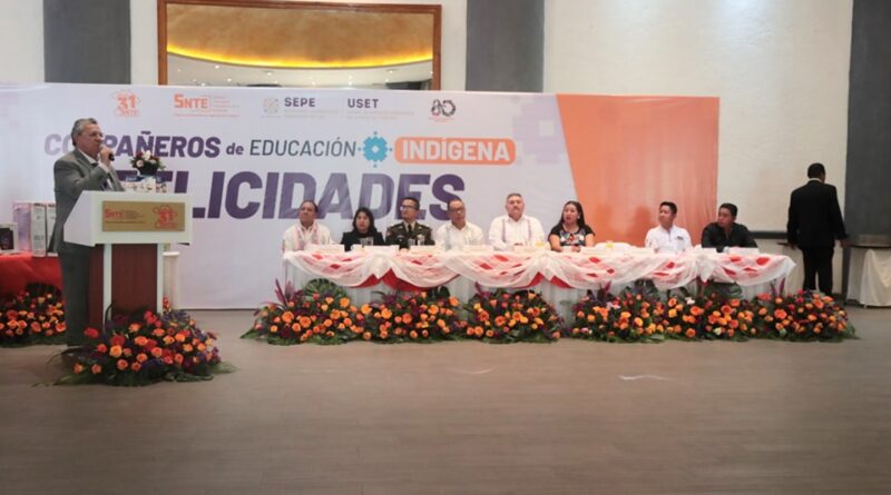 En la celebración a Maestros y Maestras de Educación Indígena de Tlaxcala, el Profr. Sergio E, Reséndiz F. Dir. de Evaluación Educativa SDEPE-USET y representante del Dr. Homero Meneses Hdez. Srio. de Educación, reconoció la labor de Trabajadores de la Educación de este Subsistema Educativo en beneficio de la niñez Indígena Tlaxcalteca, el pasado viernes 6 de septiembre en el Salón Jeroc´s de Tlaxcala capital.