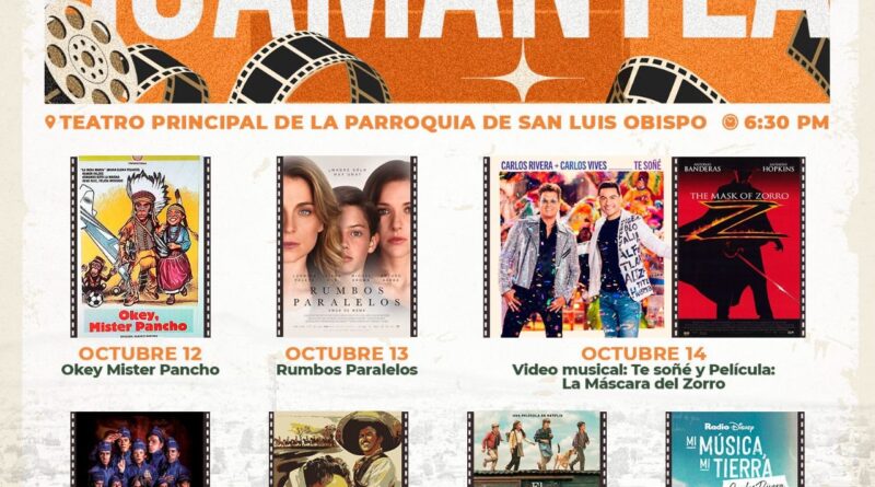 Cabe destacar que el teatro de la ciudad es aledaño a la Parroquia de San Luis Obispo, y ahí se proyectarán las siguientes películas y videoclips: