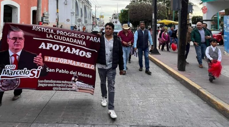 Pobladores de San Pablo del Monte y un grupo de ciudadanos simpatizantes de Marcelo Ebrard Casaubon, aspirante a coordinar los comités de defensa de la Cuarta Transformación (4T), cerraron las calles de la cabecera municipal para manifestarse a favor de este personaje y pedir piso parejo para el proceso de encuestas.