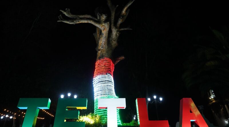 Como nunca antes Tetla se ilumina con nuevos adornos patrios; comienzan festejos de temporada.