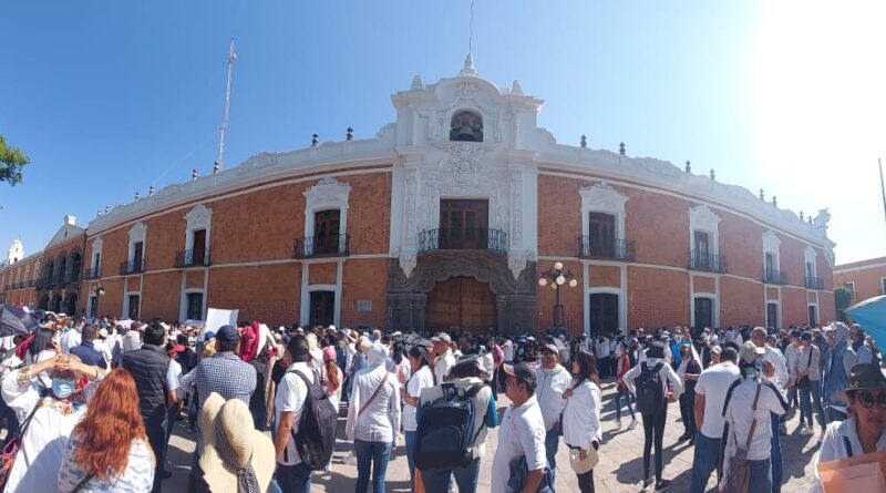 Para manifestar su rechazo a las nuevas disposiciones y cambios en el servicio médico que recibirán a partir del próximo 1 de abril a través de pensiones civiles del Gobierno del Estado, docentes de la Sección 55 del SNTE se movilizaron y la mañana de este viernes en el primer cuadro de la ciudad de capital, provocando un caos vial por varias horas.