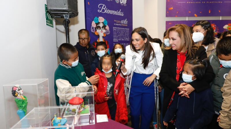 La titular del Ejecutivo local, Lorena Cuéllar Cisneros y la presidenta honorífica del Sistema Estatal para el Desarrollo Integral de la Familia (Sedif), Mariana Espinosa de los Monteros Cuéllar, recorrieron la exposición “Una Nueva Historia de Arte en Pequeñas Manos” que exhibió 58 piezas únicas de modelado en plastilina que fueron realizadas por niñas y niños del Centro de Asistencia Social (CAS).