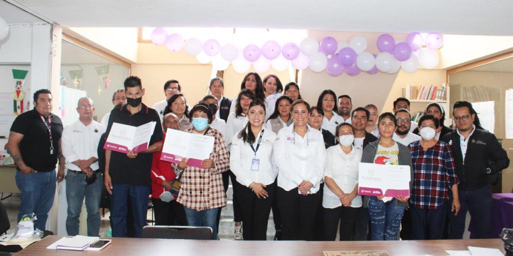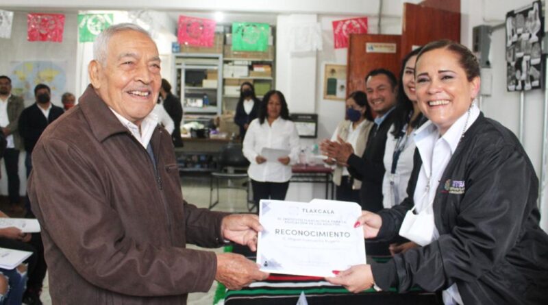 En la Coordinación de Zona 01 de Apizaco, Michaelle Brito entregó reconocimientos a dos personas adultas que aprendieron a leer y escribir, así como a asesoras que han cumplido más de 10 años en la labor de la alfabetización.