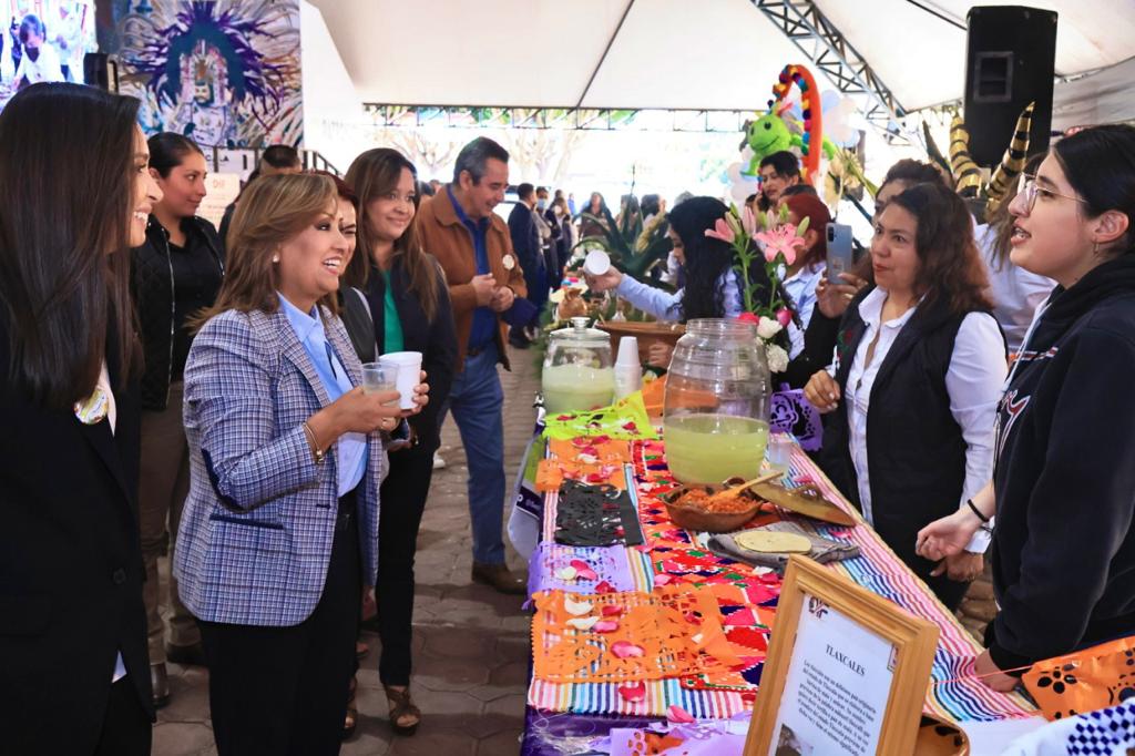 La gobernadora Lorena Cuéllar Cisneros asistió como invitada especial a la Muestra Gastronómica “No dejar a nadie atrás”, organizada por el Sistema Estatal para el Desarrollo Integral de la Familia (Sedif), en el marco del Día Mundial de la Alimentación para promover la buena nutrición, la cocina tradicional tlaxcalteca y el acceso a alimentos saludables.