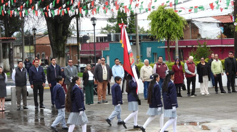 El acto cívico contó con la participación de la escuela Primaria Mártires de 1810 de la comunidad de San José Tetel, además de la presencia de integrantes del Cuerpo Edilicio y personal administrativo.