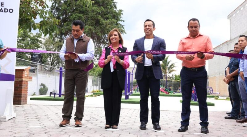 La gobernadora Lorena Cuéllar Cisneros entregó a vecinos del barrio de Xochicalco, municipio de Zacatelco, un nuevo espacio recreativo que consta de un gimnasio al aire libre y juegos infantiles, con lo que se fomenta la unión familiar y la sana convivencia.