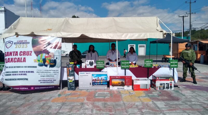 La segunda semana de la Campaña de Canje de Armas 2023 continúa en los municipios de Tlaxcala capital, Apizaco, Huamantla y Santa Cruz Tlaxcala, en un horario de 10:00 a 16:00 horas, de lunes a viernes, mientras que el sábado será de 10:00 a 14:00 horas.