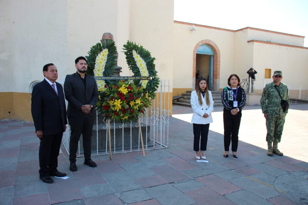En el atrio de la Parroquia de San Bernardino de Siena, donde se encuentra el busto en memoria del héroe, Roldán Xolocotzi estuvo acompañada por representantes del Poder Ejecutivo, Legislativo y Judicial del estado de Tlaxcala, quienes rindieron homenaje al oriundo de este municipio que luchó incansablemente por la justicia y la libertad.