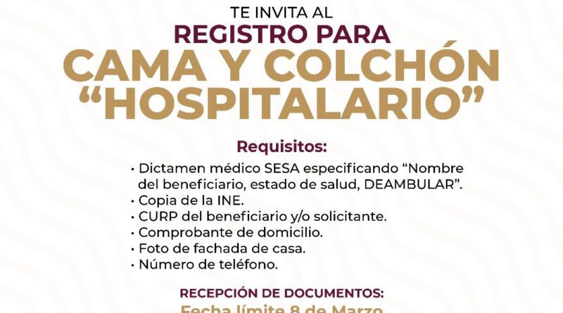 El Sistema Municipal para el Desarrollo Integral de la Familia (SMDIF) en coordinación y con el apoyo del Sistema Estatal para el Desarrollo Integral de la Familia (SEDIF), invitan a los chiautempenses al registro para Cama y Colchón “Hospitalario”.