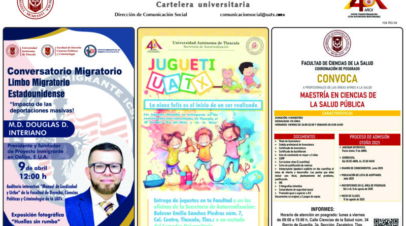 Cartelera de la Universidad Autónoma de Tlaxcala, viernes 13 de marzo de 2026