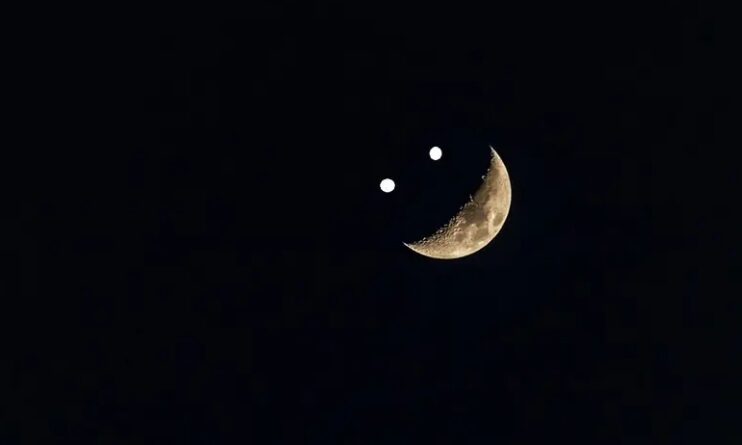 Este 25 de abril, la Luna creciente, con dos planetas brillantes cerca, dejará en el cielo una forma que recuerda una cara sonriente
