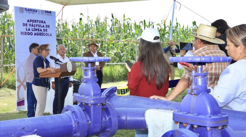 La gobernadora Lorena Cuéllar Cisneros abrió la válvula de dos líneas de riego agrícola de las Plantas de Tratamiento de Aguas Residuales (PTAR) en Tepetitla de Lardizábal, en las que se invirtieron 842 mil 581 pesos en beneficio de 17 mil 362 habitantes y agricultores.