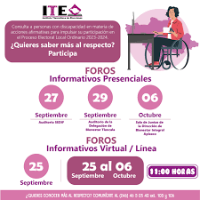 El Instituto Tlaxcalteca de Elecciones (ITE), invitó a la ciudadanía en general a participar en los foros informativos presenciales, respecto a la Consulta a personas con discapacidad en materia de acciones afirmativas para impulsar su participación en el Proceso Electoral Local Ordinario 2023-2024.