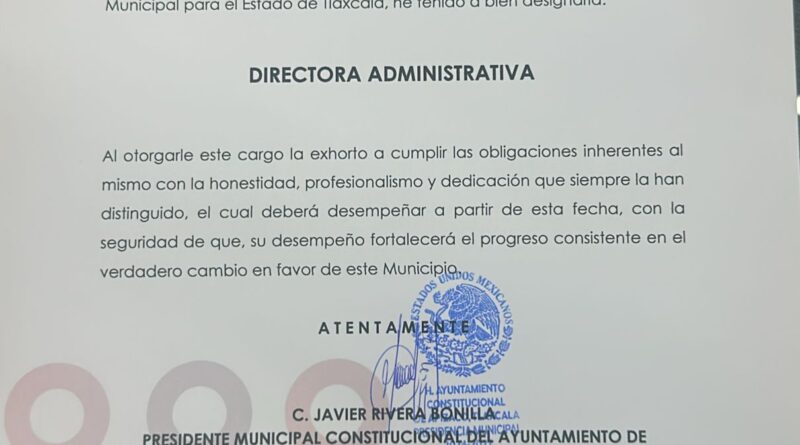 El presidente municipal de Apizaco, Javier Rivera Bonilla, designó a Estela López Montiel como Directora Administrativa del Ayuntamiento de Apizaco, quien cuenta con la capacidad y el compromiso para contribuir al buen funcionamiento de la administración pública.