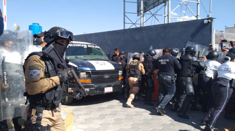 Despido de sindicalizados en Chiautempan provoca enfrentamiento entre policías y burócratas