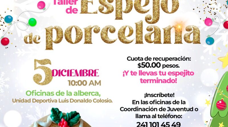 ¡Despierta tu lado artístico! 🎨Este 5 de diciembre acompáñanos al Taller de Espejo de Porcelana y crea tu propio diseño navideño. 🎅