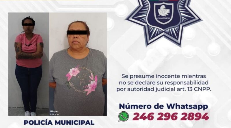 Elementos de la Dirección de Seguridad Pública Municipal, Vialidad y Protección Civil de Chiautempan, detuvieron a cuatro femeninas por su probable responsabilidad en el intento de hurto de productos de una tienda de autoservicio y daños a la misma.