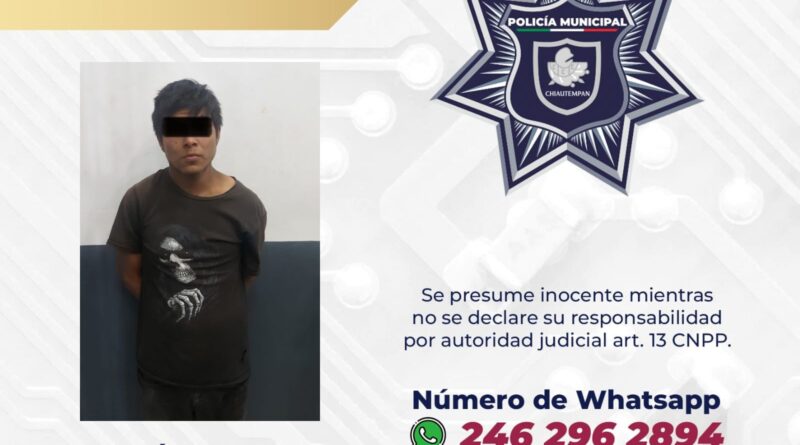 Elementos del Grupo de Operaciones Tácticas (GOT) de la Dirección de Seguridad Pública Municipal, Vialidad y Protección Civil de Chiautempan detuvieron a dos sujetos identificados por daños a un vehículo particular, en la modalidad de «cristalazo».