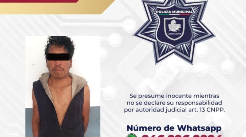 Detiene Policía de Chiautempan a masculino por probable hecho constitutivo de delito