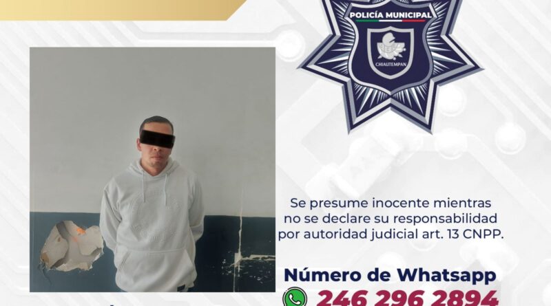 La Policía de Chiautempan detuvo a un hombre de origen Colombiano que fue identificado por dedicarse a los conocidos cobros «gota a gota», además por amenazas e intento de cohecho a los elementos de la Dirección de Seguridad Pública Municipal, Vialidad y Protección Civil.