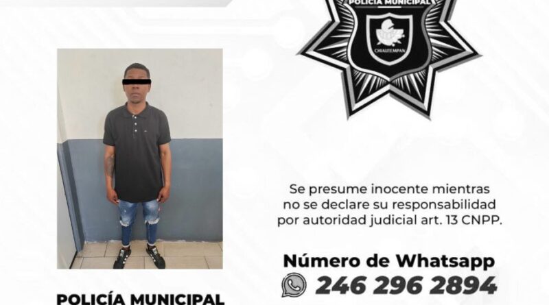 Por estos motivos, Luis Fernando N., fue detenido y trasladado a la Dirección de Seguridad Pública Municipal, Vialidad y Protección Civil de Chiautempan para que sea juzgado por sus actos.