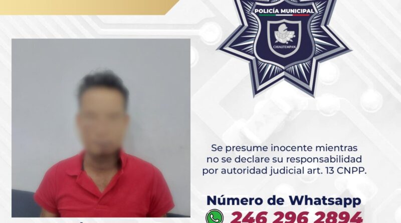 Detiene Policía de Chiautempan a sujeto por robo