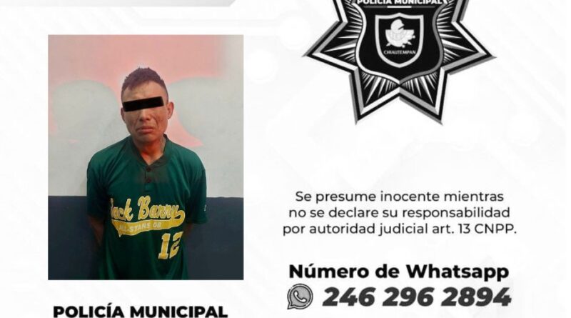 Detiene Policía de Chiautempan a sujeto por señalamientos de diversos ilicitos